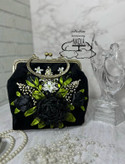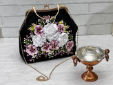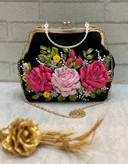 کیف مجلسی زنانه رباندوزی دستدوز دهنه فلزی دسته دار