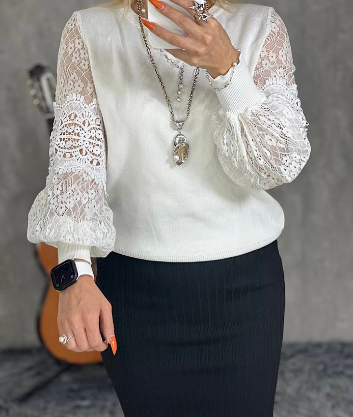 بافت آستین تور وسط دانتل پهن
