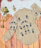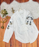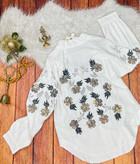 شومیز مانتویی زنانه پولک دوزی گل پنج پر